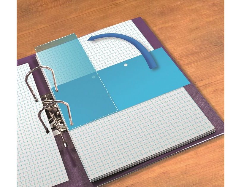 Separator unic cu dubla perforatie pe 2 laturi, ce permite asezarea pe vertical sau orizontal in biblioraft.